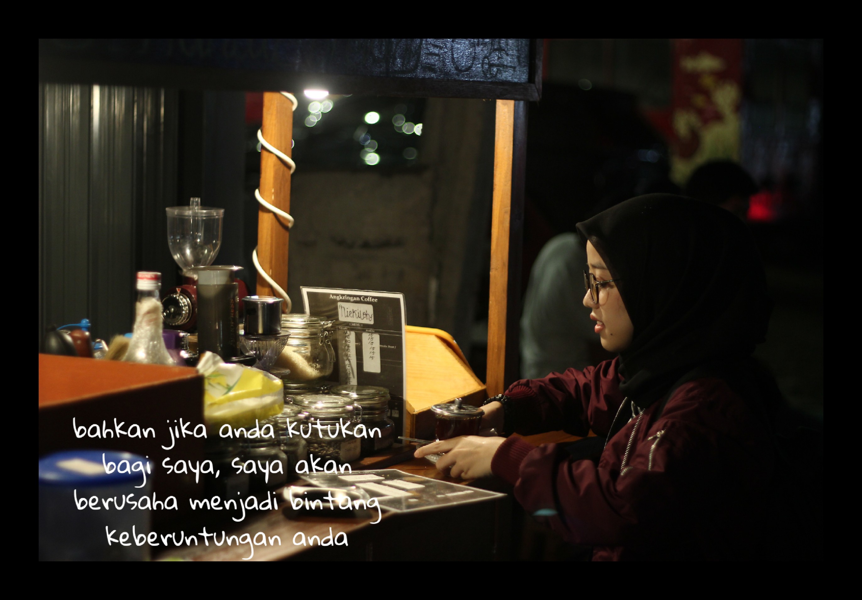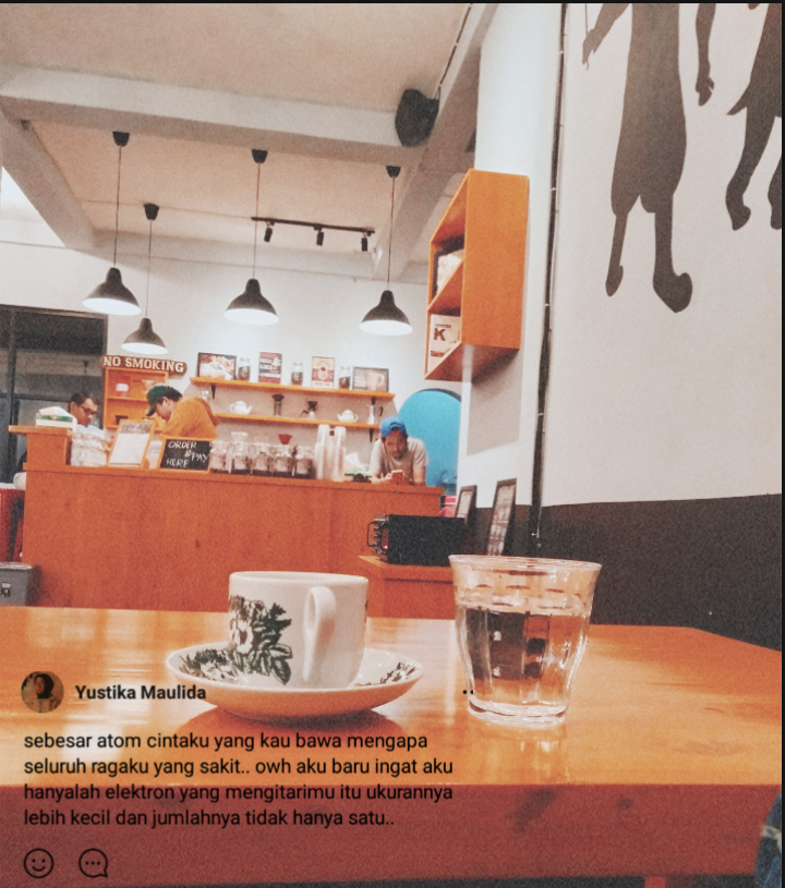 Kopiku ini rela mengendapkan sebagian kepedihanmu, sabar menghangatkan kesedihanmu, dan harum ekstraksi yang menenangkan jiwamu.